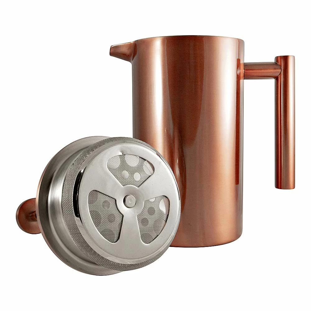 Treat yourself to authentic French style pressed coffee at home using the high-performance Baccarat Barista Brillante Stainless Steel Double Wall Coffee Press 1L! Designed in Australia by iconic homewares experts Baccarat, this coffee press is constructed from premium stainless steel for lasting durability and appeal. Versatile in function, it comes in handy for creating traditional French style pressed coffee or making herbal infusions and loose-leaf tea. Exceptionally simple to use, the Barista Coffee Press features an easy glide plunger with a micro mesh filter which allows the coffee grounds to be pressed down while enabling the full flavour to be extracted from the coffee. With a double wall thermal construction, the coffee press ensures that contents are kept hotter (or cooler) for longer. Enjoy delicious traditional French style pressed coffee at home with the stylish sleek copper coloured Baccarat Barista Brillante Stainless Steel Double Wall Coffee Press 1L!