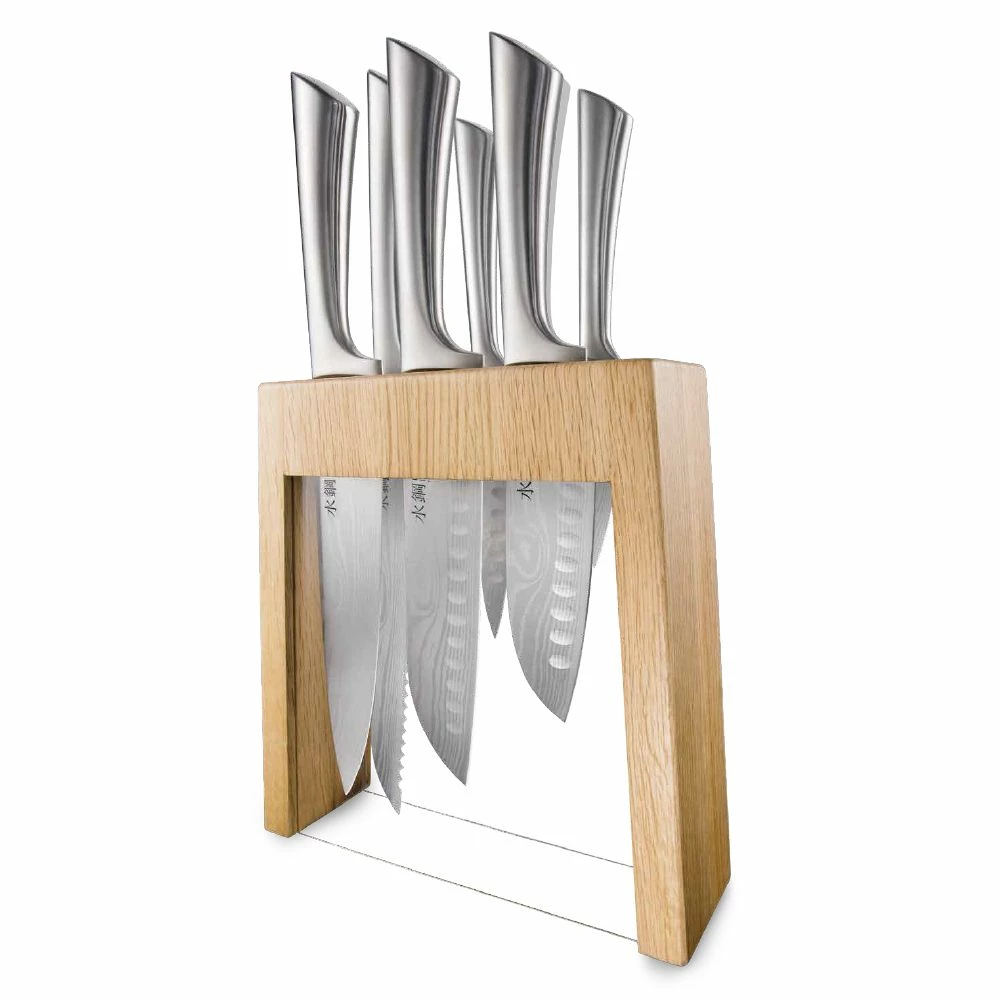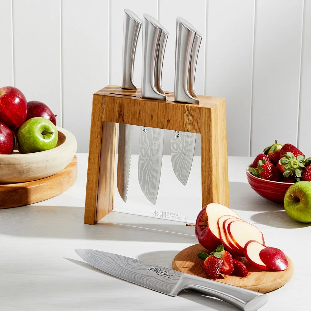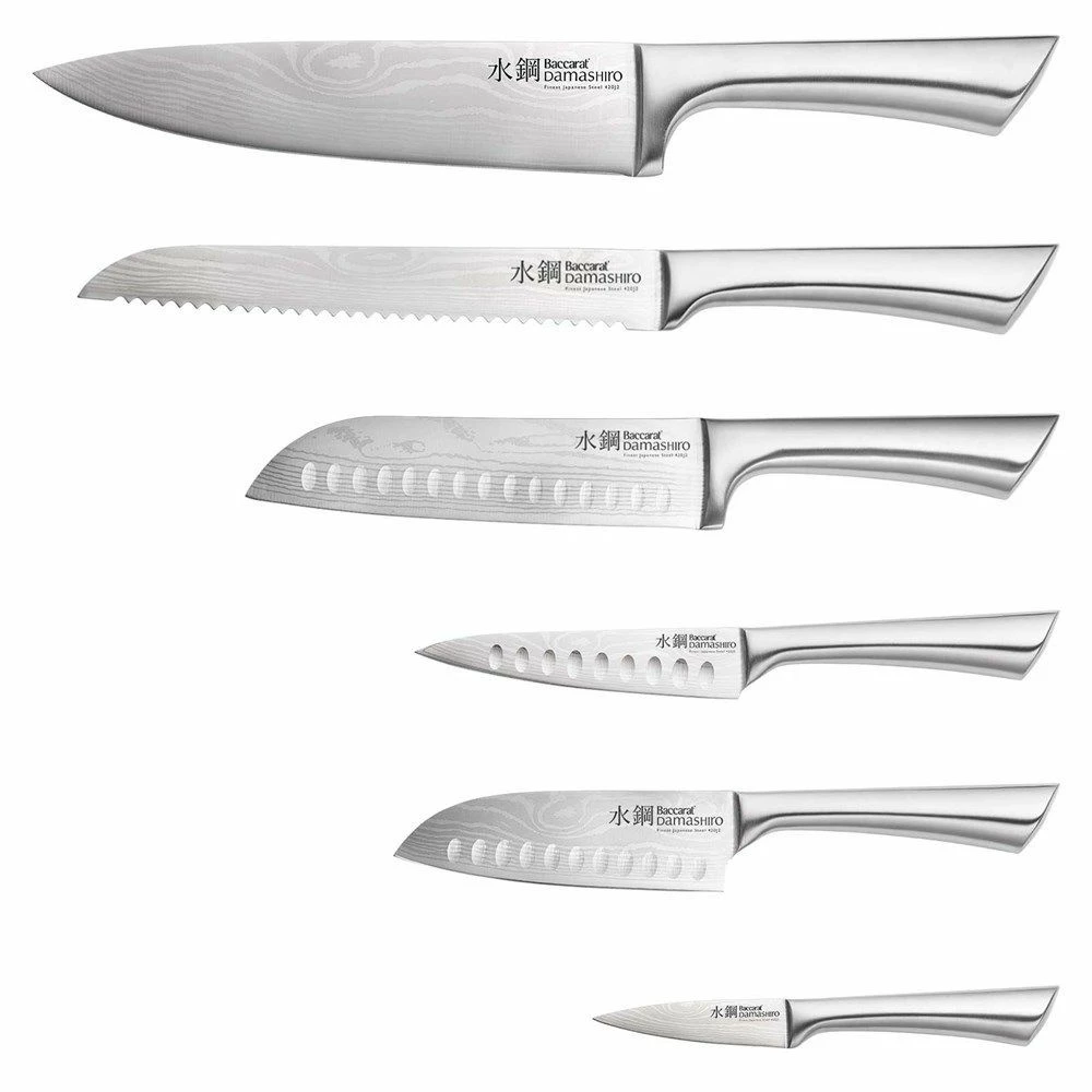 - The Baccarat® Damashiro® 7 Piece Mizu Knife Block Oak set contains: 1 x 20cm/8″ Chefs knife, 1 x 20cm/8″ Bread knife, 1 x 17cm/6.5″ Santoku knife, 1 x 14cm/5.5″ Santoku knife, 1 x 12cm/4.5″ Utility knife, 1 x 9cm/3.5″ Paring knife