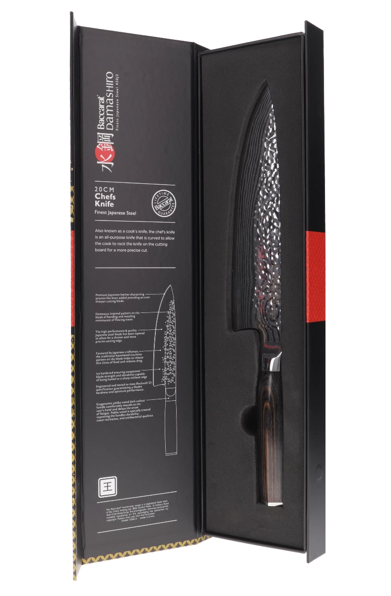 - The Baccarat® Damashiro® EMPEROR Chefs Knife is an all-purpose knife that is curved to allow the cook to rock the knife on the cutting board for a more precise cut
