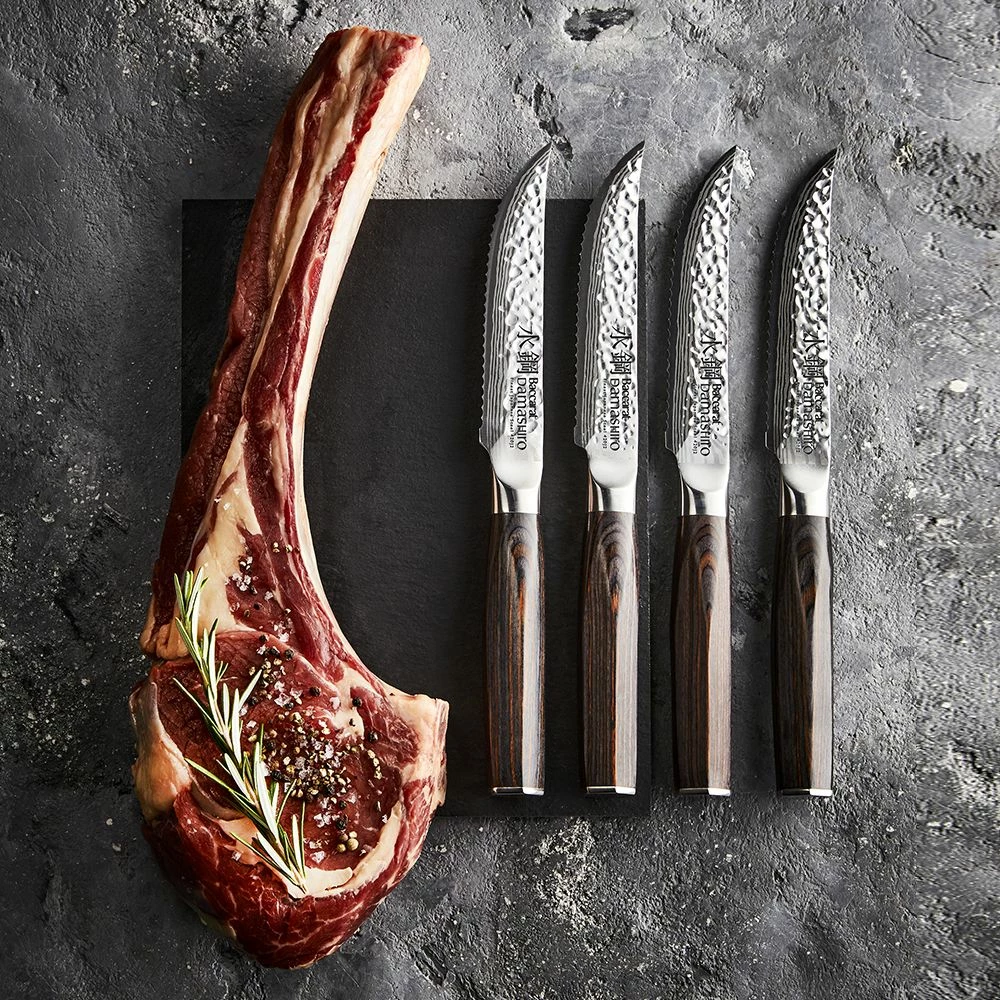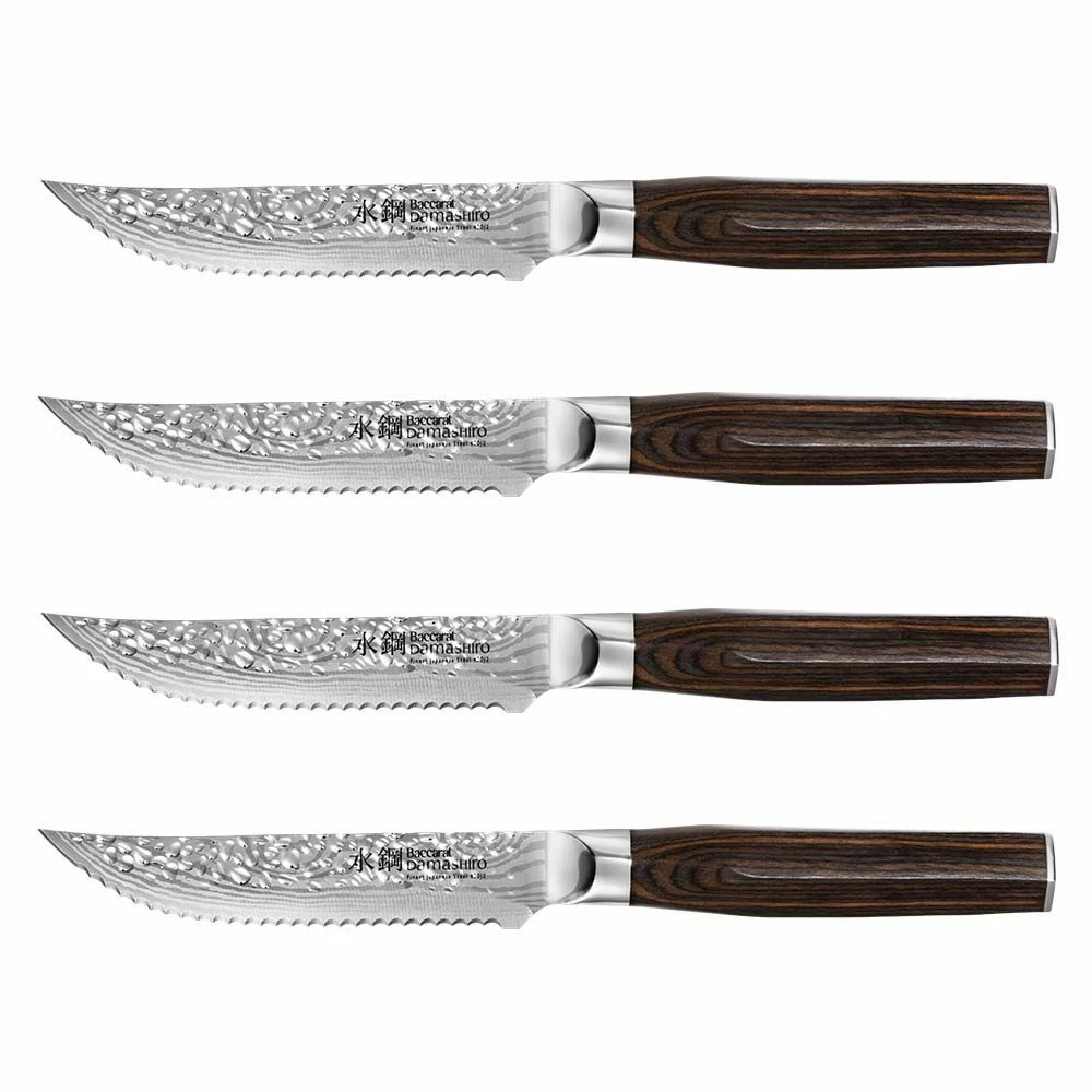 The performance of the Baccarat® Damashiro® EMPEROR 4 Piece Steak Knife Set makes it a #1 essential. The best meals deserve the best equipment. These knives feature razor sharp serrated edges for cutting through meat without crushing or tearing. Enjoy delicious roast dinners, steak nights and other meat dishes.