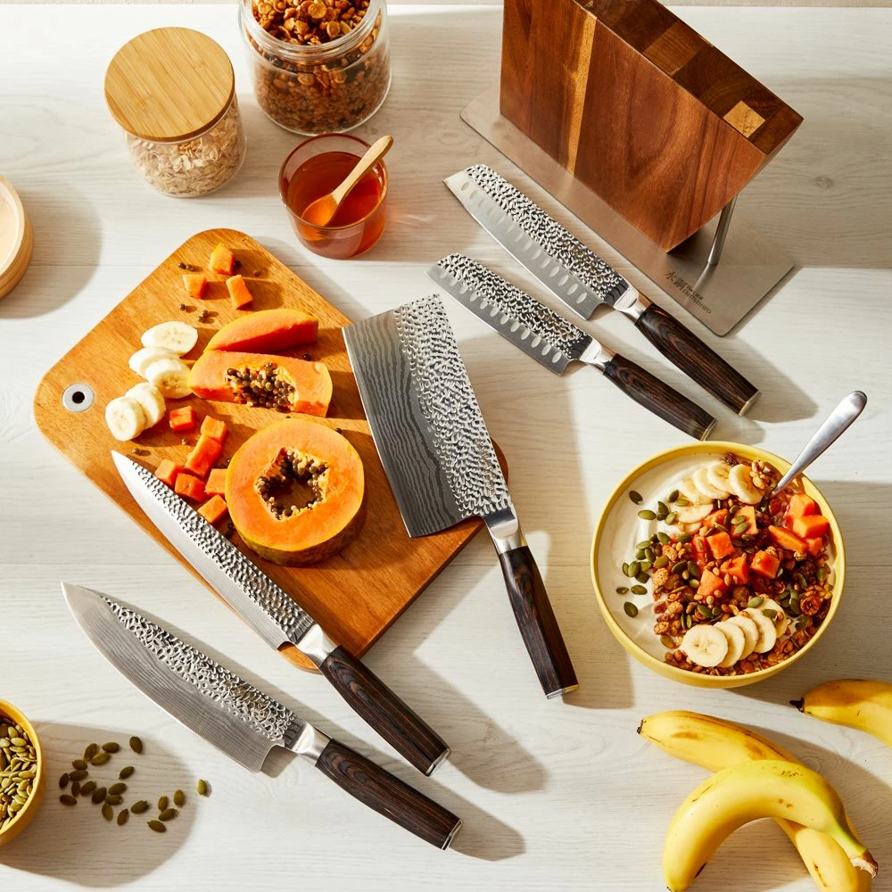 - Inspired by traditional Japanese craftsman and Samurai sword makers, these knives are characterised by distinctive damascus inspired patterns on the blade of banding and mottling, reminiscent of flowing water