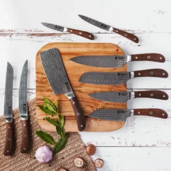- The distinctive Damascus inspired blade has been tapered to allow for a thinner and more precise cutting edge
