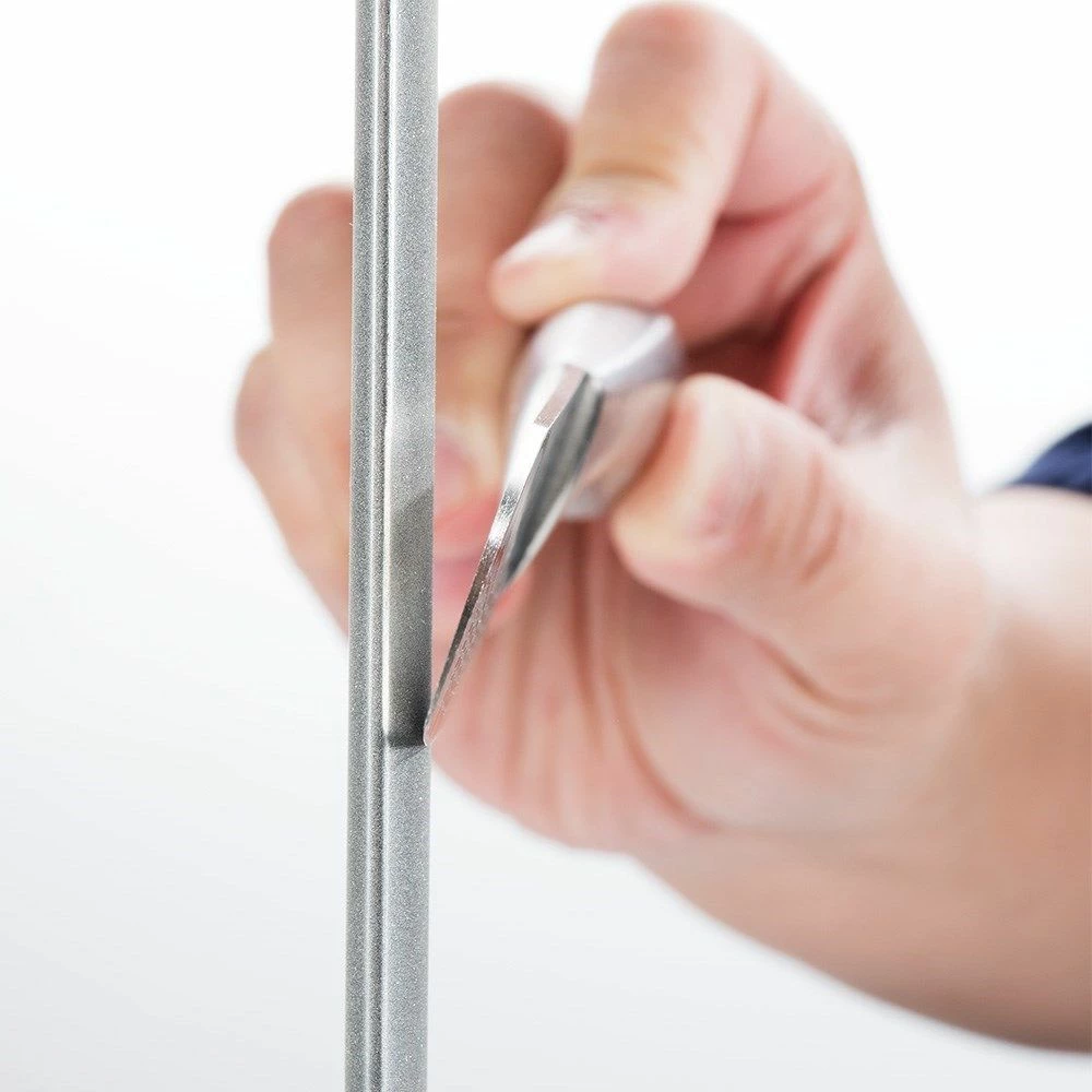 - Diamond encrusted stainless steel is perfect for keeping knives sharp and at the ready, with a comfortable sure grip handle