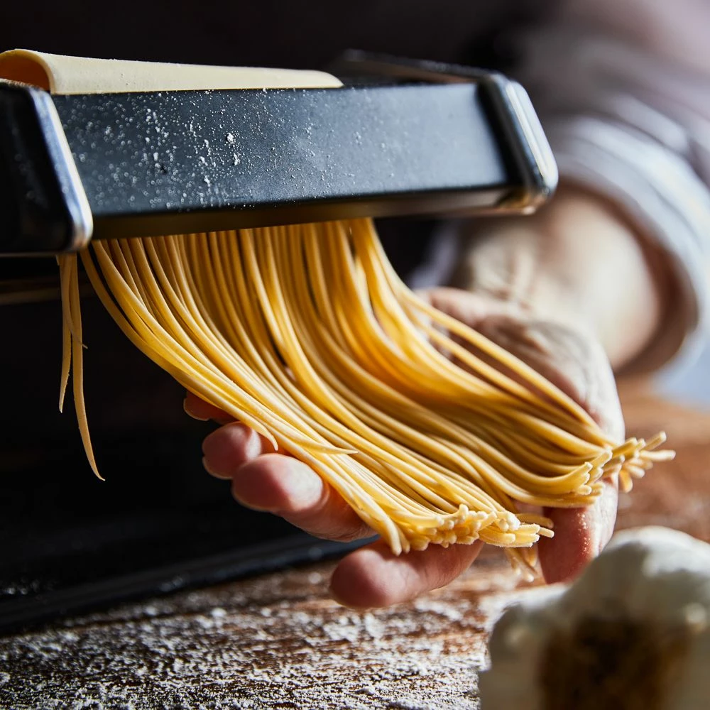 - A choice of cutting blades to create different widths of pasta such as fettucine and spaghetti