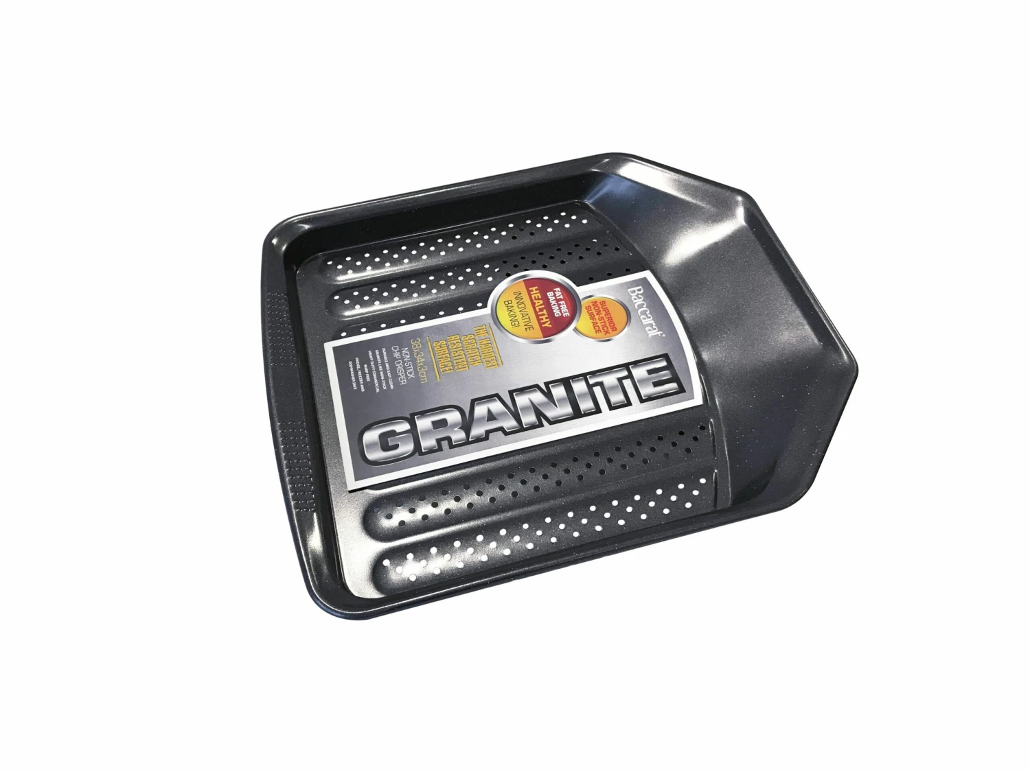 Bake up a storm with the Baccarat Granite 38 x 34cm Chip Crisper Tray. The Baccarat Granite range of baking trays and pans are designed for durability to make every day baking a breeze. The Baccarat Granite 38 x 34cm Chip Crisper Tray features a granite like non-stick coating and is made from heavy durable carbon steel to provide even heat distribution to ensure the very best baking results. The pan is finished with a non-stick coating to facilitate the easy release of baked goods while also being easy to clean.