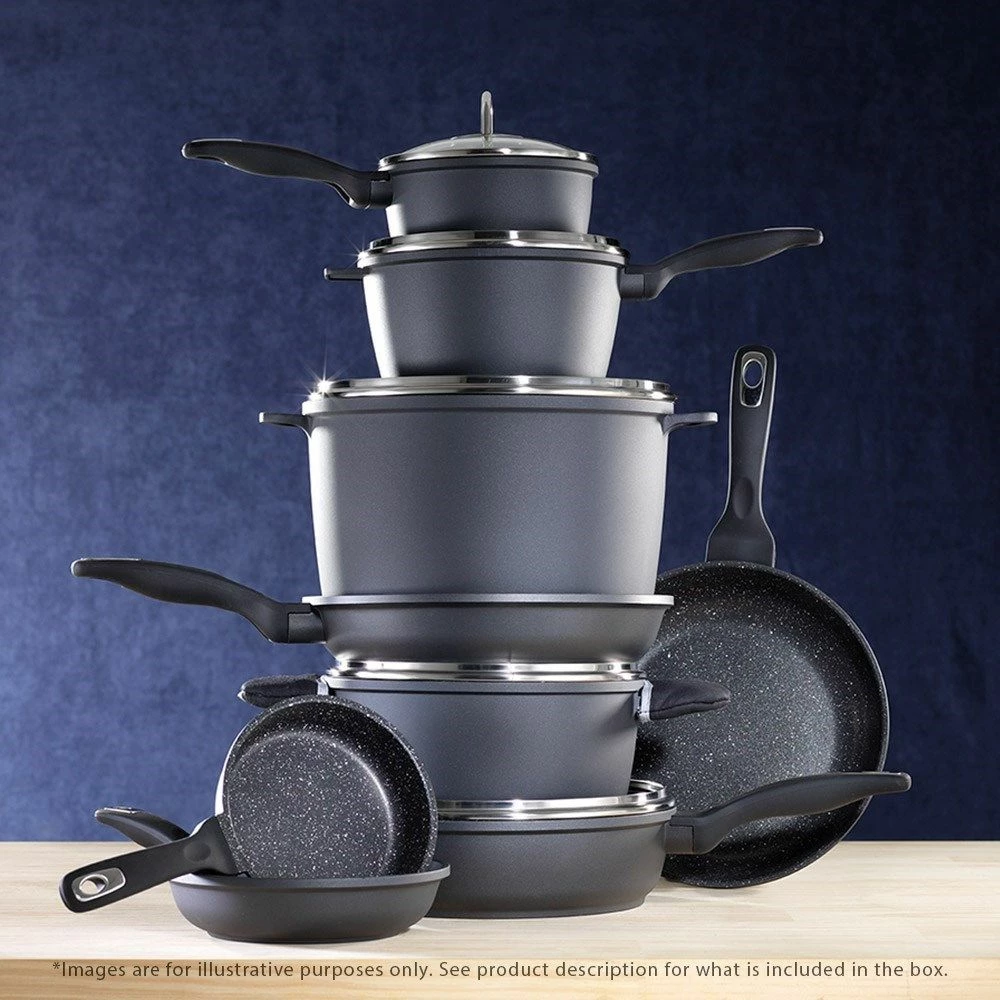 The Baccarat Granite 4 Piece Cookware Set is the perfect way to make any sort of meals. Including a 20cm fry pan, 26cm fry pan, 16cm saucepan with lid, and 24cm casserole with lid you are ready to go! The Baccarat Granite range is environmentally friendly and PFOA pollution free; with a Non-stick coating that doesn’t require you to cook with any fats or oils ensuring your meals are healthy and fat free. This Baccarat Granite 4 Piece Cookware Set is suitable for all cook tops, and has a scratch resistant surface, and is also dishwasher safe making cleaning up after cooking a breeze! For cookware you can rely on choose Baccarat Granite!