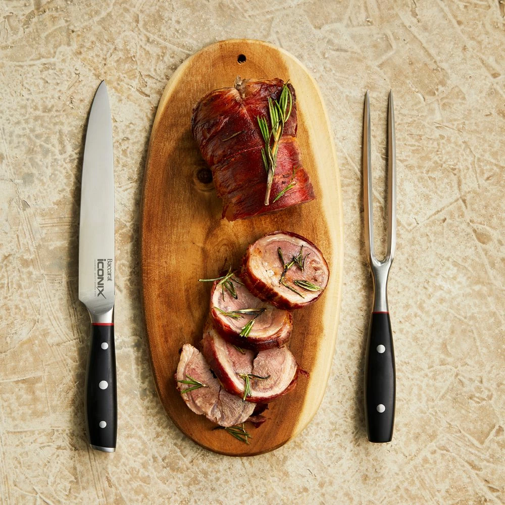 Carve succulent slices of roast meat with the high performance Baccarat® iconiX® Carving Set inspired by traditional German craftsman and blade-smiths.