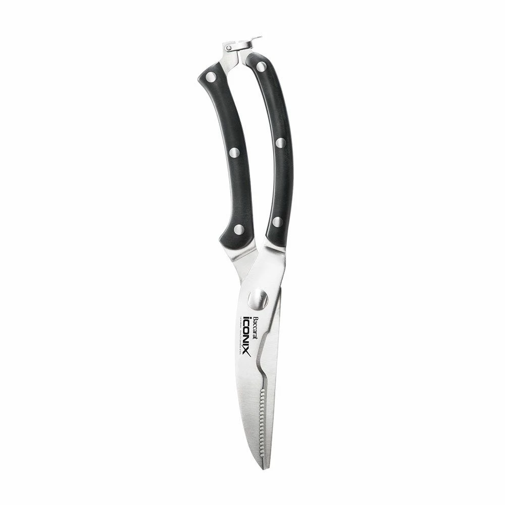 Chop fresh herbs with ease using the premium quality iconiX Shears by Baccarat. Introducing bladesmith perfection to your kitchen, these shears are crafted from the finest German steel and offer lasting strength and durability. Fantastic for cutting herbs, poultry, food packaging and more, the iconiX Shears are a versatile essential for any culinary space. The durable polymer handles have been contoured to guarantee and comfortable and controlled grip while the blades offer a razor sharp edge to slice through all kinds of ingredients. Upgrade your kitchen collection with the high performance Baccarat iconiX Shears!