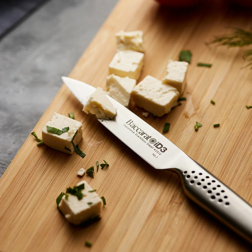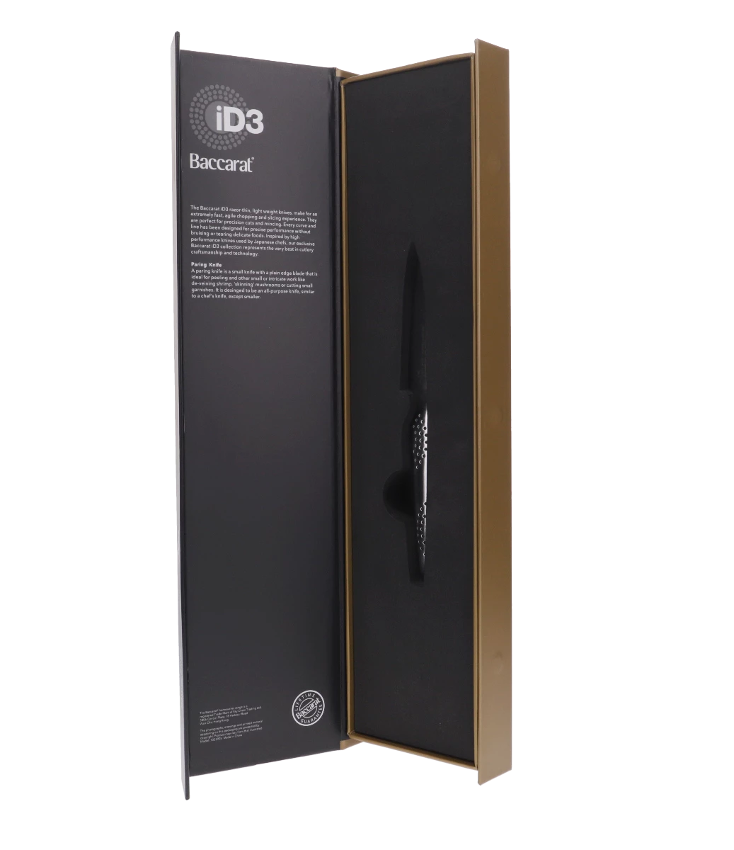 The Baccarat® iD3® Paring Knife (9cm) is a ‘must have’ kitchen knife. Perfect for the intricate and everyday culinary tasks of peeling and slicing fresh produce. Its razor sharp blade edge makes for incredible precision and control.