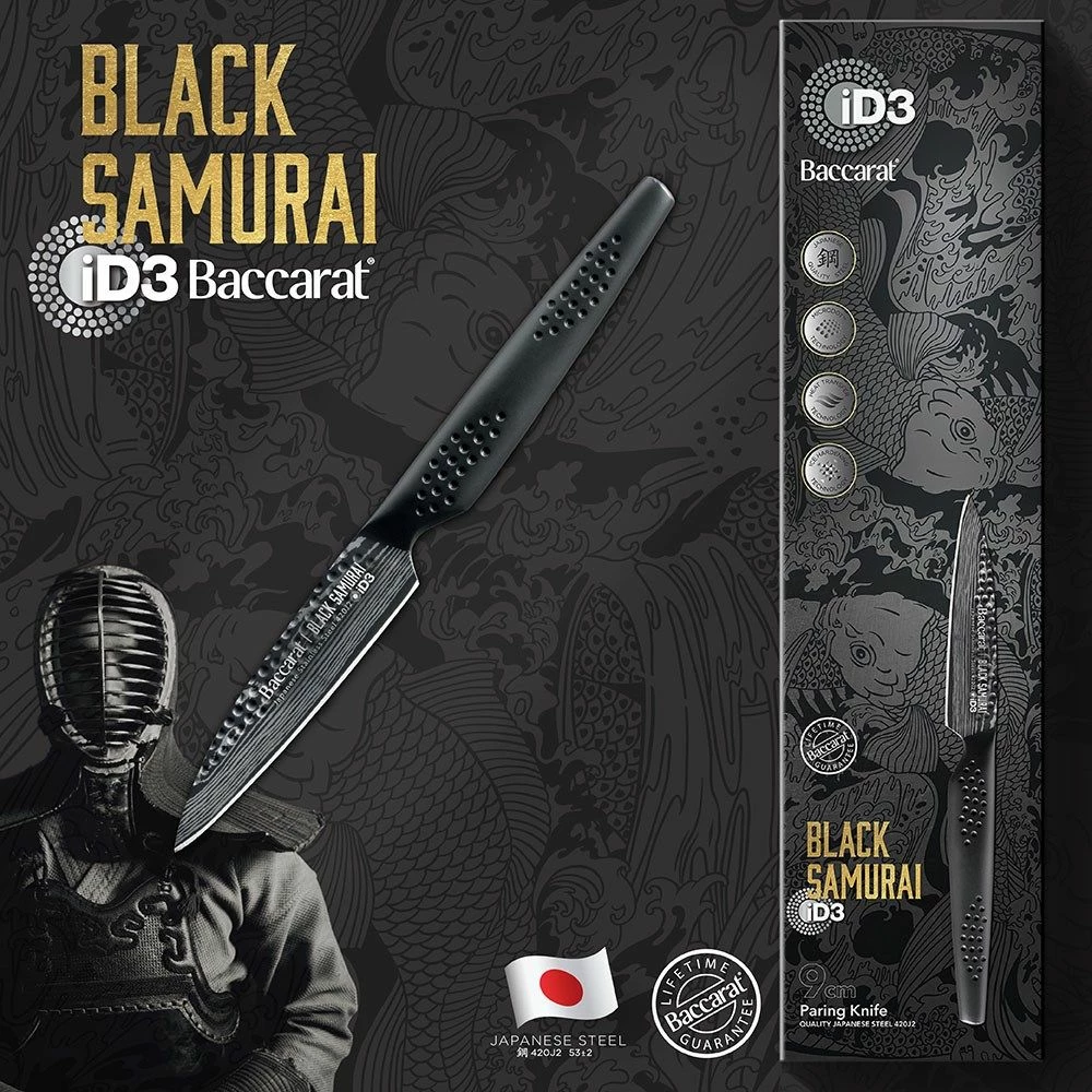 - The Baccarat® iD3® BLACK SAMURAI™ Paring knife is our smallest kitchen knife. It has a razor sharp blade that is ideal for everyday culinary tasks of peeling and slicing fresh produce, or intricate work like deveining a shrimp, skinning mushrooms or cutti