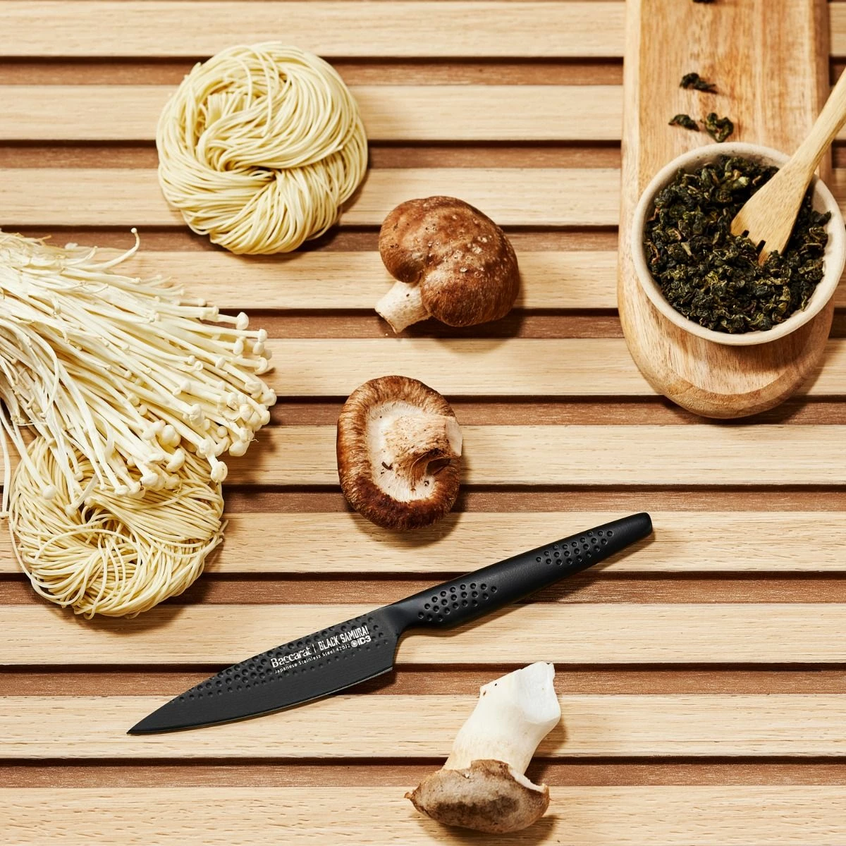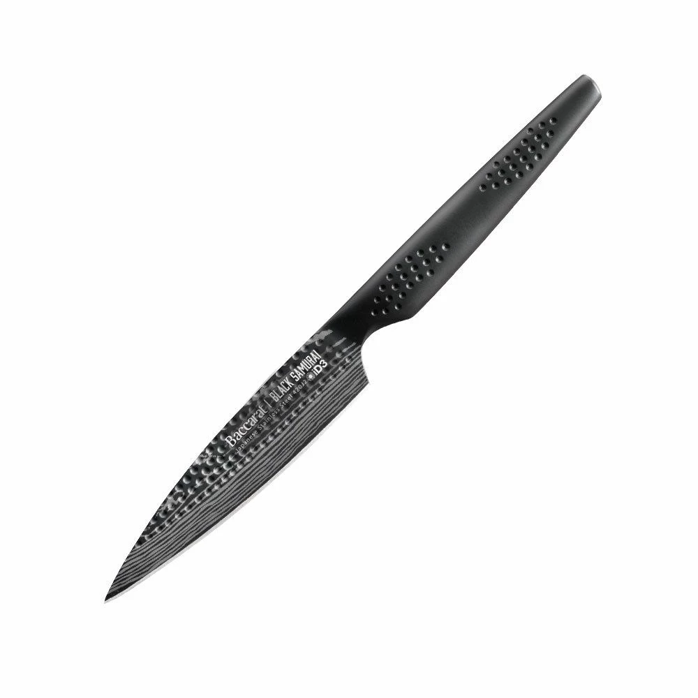 The Baccarat® iD3® BLACK SAMURAI® Utility Knife (11cm) is a medium sized versatile knife. It is a ‘must-have knife’ with allrounder performance for every Chef in every kitchen. It has a curved blade edge that Cooks will effortlessly slice, portion or chop with precision and control.