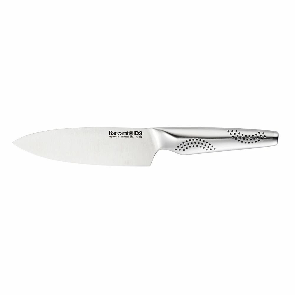 The Baccarat® iD3® Chefs Knife (15cm) is traditionally known as a cooks knife. It is an all-purpose knife that is curved to allow the Cook to rock the knife on the cutting board for a more precise cut.