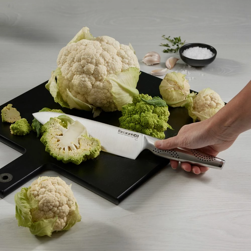 Baccarat® iD3® knives are crafted from the finest Japanese Steel 420J2. The Japanese steel blade construction has been inspired by century old manufacturing techniques favoured by traditional Japanese craftsman and Samurai sword makers, to create a super sharp cutting edge which holds a greater edge retention. The blades are ice-hardened ensuring superior blade strength and durability.