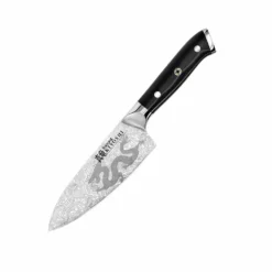 Slice, cut and chop your favourite ingredients with superior precision, control and ease using the professional quality Baccarat Kiyoshi Chefs Knife! Made from the finest quality Japanese steel, the Kiyoshi knives are inspired by traditional Japanese craftsman and Samurai sword makers. This knife is characterized by distinctive Damascus inspired patterns on the blade of banding and mottling, reminiscent of slowing water. The Kiyoshi knives by Baccarat are made from specialist ice hardened Japanese steel, which makes them super tough, resistant to shattering and capable of being honed to a sharp, resilient edge. A small all-purpose knife for general tasks in the kitchen, this quintessential knife is useful for making classic cuts such as julienne, dice and fine chop and can be used for fruits, vegetables, meats and fish. Engineered and tested to meet Rockwell 53 specification, the Kiyoshi Japanese Chefs Knife by Baccarat provides optimum performance. Experience a lifetime of superior quality kitchen cutting experiences with the Kiyoshi Japanese Chefs Knife by Baccarat!
