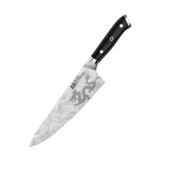Slice, cut and chop your favourite ingredients with superior precision, control and ease using the professional quality Baccarat Kiyoshi Chefs Knife! Made from the finest quality Japanese steel, the Kiyoshi knives are inspired by traditional Japanese craftsman and Samurai sword makers. This knife is characterized by distinctive Damascus inspired patterns on the blade of banding and mottling, reminiscent of slowing water. The Kiyoshi knives by Baccarat are made from specialist ice hardened Japanese steel, which makes them super tough, resistant to shattering and capable of being honed to a sharp, resilient edge. Also known as a cooks knife, the chefs knife is an all-purpose knife that is curved to allow the cook to rock the knife on the cutting board for a more precise cut. Engineered and tested to meet Rockwell 53 specification, the Kiyoshi Japanese Chefs Knife by Baccarat provides optimum performance. Experience a lifetime of superior quality kitchen cutting experiences with the Kiyoshi Japanese Chefs Knife by Baccarat!