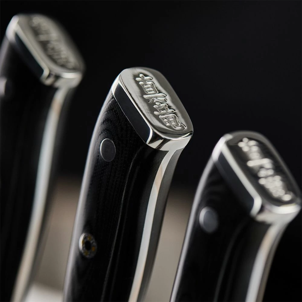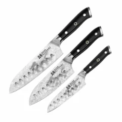 - The set includes three Kiyoshi Santoku knives of different sizes