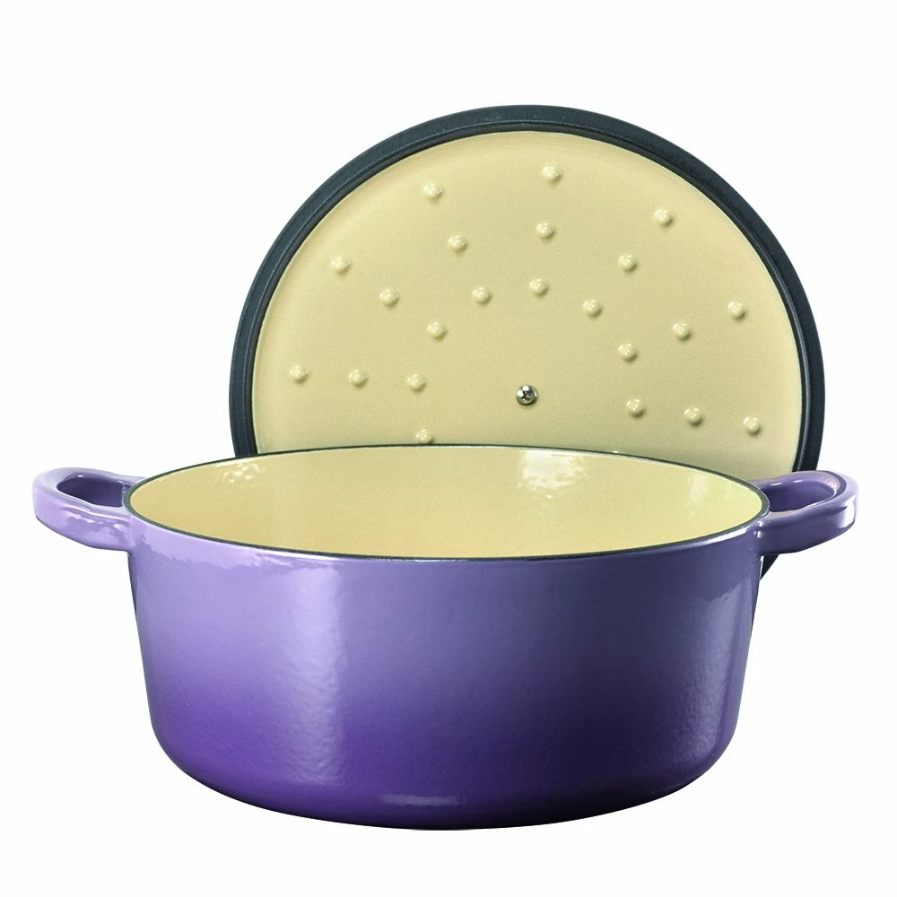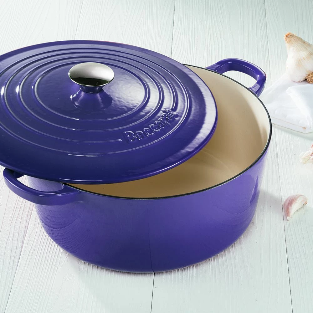 Explore the richness of European cuisines and create delicious stews, casseroles, and other divine dishes with the Baccarat Le Connoisseur Cast Iron Round French Oven 29cm 6.3L in Purple. With a generous 6.3L capacity, this essential winter cookware item is perfect for preparing hearty and healthy dishes to warm the hearts and bellies of your friends and loved ones. Crafted from premium grade cast iron, the Baccarat Le Connoisseur French Oven is designed to be incredibly and remains resistant to chipping and breaking. Self-basting spikes have been applied on the surface of the lid to collect and direct moisture back into the dish, creating a juicy and succulent meal. The Baccarat Le Connoisseur Cast Iron Round French Oven features generously sized handles that ensure each piece is easy to hold and carry. The Le Connoisseur cookware offers the industry standard and stainless-steel knob. Perfect for all your cooking and serving needs. Cook with confidence knowing that your Le Connoisseur cookware is backed by the Baccarat Lifetime Guarantee.