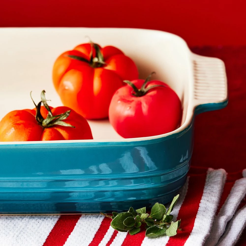 Bake and serve delicious and hearty family favourites, like lasagne and other pasta bakes, veggies and meats, decadent desserts and more in the Baccarat Le Connoisseur Stoneware Lasagne Dish. This essential cookware piece is truly made to make cooking easy; use to meal prep large quantities or accommodate a full table of dinner guests – any of your cooking and baking needs can be handled by this diverse dish. Modelled after Baccarat’s popular Le Connoisseur Cast Iron range, the Le Connoisseur Lasagne Baking Dish features a simple and stylish design that can be matched to your existing cast iron pots or paired with your current cookware heroes. Crafted from premium stoneware, the Baccarat Le Connoisseur Lasagne Baking Dish is remarkably resistant to bumps and knocks, ensuring its quality and durability over time. Finished in a gorgeous deep emerald teal glaze, the Baccarat Le Connoisseur Lasagne Dish blends effortlessly with existing kitchen and table décor while making a bold personality statement. Ideal for oven-to-table serving, the Le Connoisseur Lasagne Baking Dish is oven, microwave, fridge, freezer and dishwasher safe for total convenience.