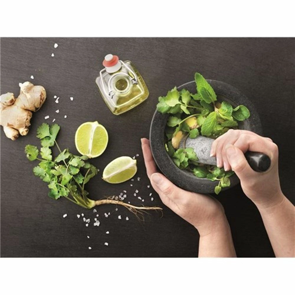 Blend fresh and fragrant pastes spice blends at home with the Baccarat Malta Mortar & Pestle. This ancient food preparation item is a must for every kitchen. Made from durable rugged granite, this mortar & pestle has been shaped and carved into a smooth yet, robust accessory that will last many lifetimes. This traditional shaped mortar & pestle is the great all-rounder that is perfect for mashing and pounding. The contoured pestle provides excellent grip and control while making spices into powder, crushing rock salt or bruising garlic. The sturdy weight of the Baccarat Malta Mortar & Pestle creates stability when in use.