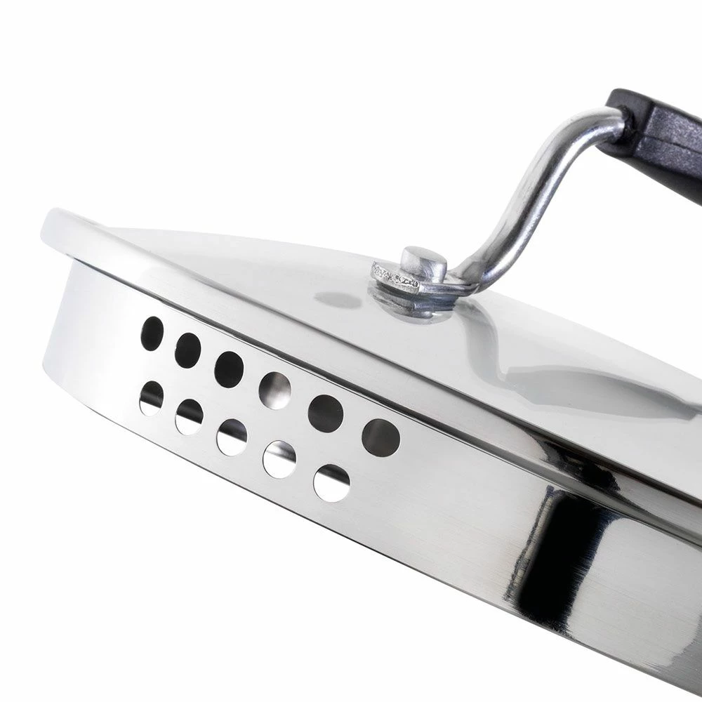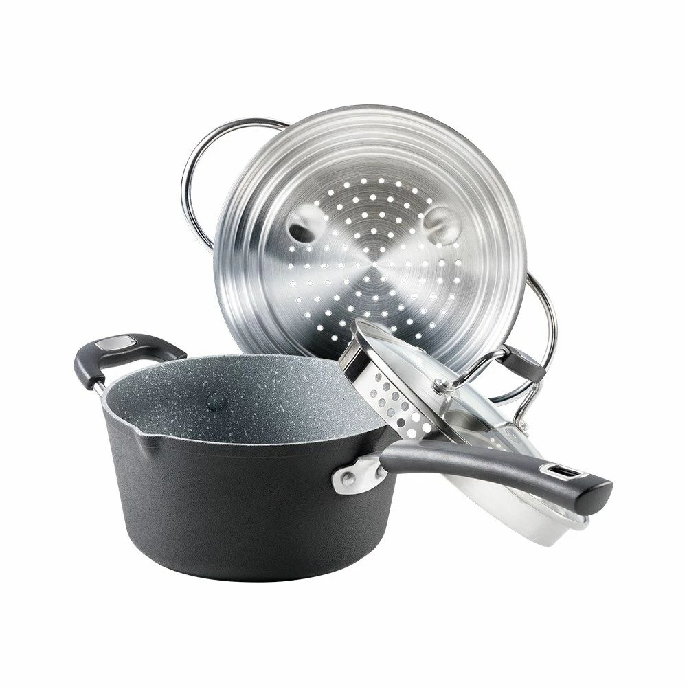 - Bakelite handles stay cool for longer even on the cooktop, plus ALL-IN-ONE spout and lid strainer provides superior control when straining. These pans are ideal for straining pasta, noodles or vegetables.