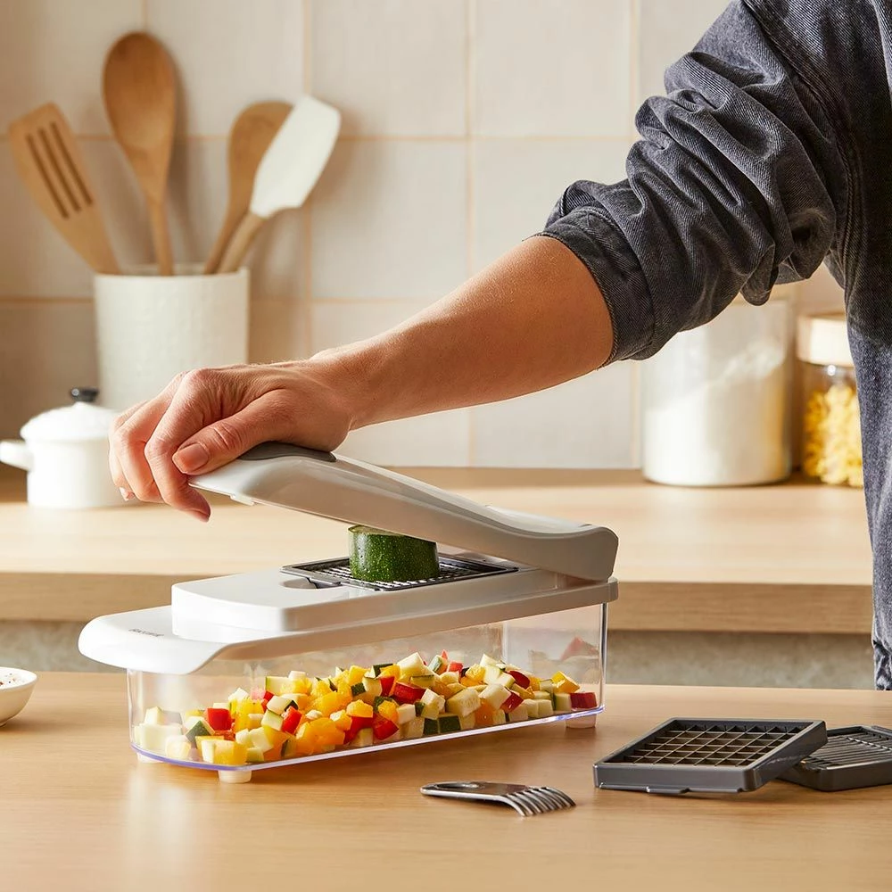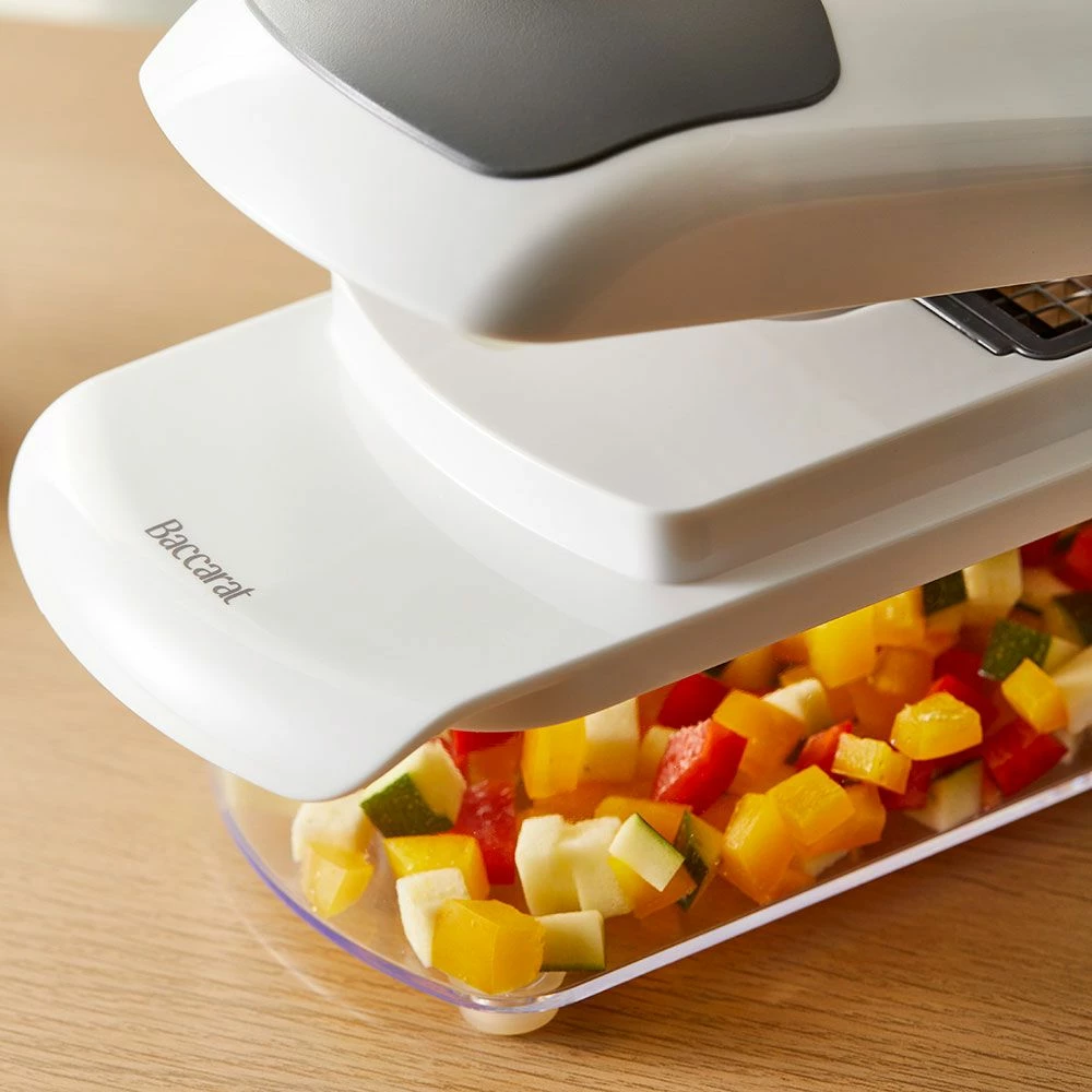 The Baccarat Prepare Croc Chop offers an exciting and effortless alternative to slicing and dicing your vegetables with a kitchen knife. Especially designed to save you time in the kitchen, the Croc Chop is the ultimate food preparation tool for every kitchen. Complete with everything you need for cutting, dicing and slicing, the Croc Chop will get the job done in a simple two step action. Crafted with stainless-steel precision blades, the Croc Chop by Baccarat significantly simplifies the cooking proves. Enjoy the benefits of the high-performance Croc Chop from the Prepare range by Baccarat at home.