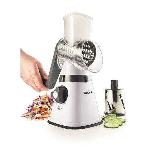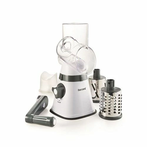 Slice and grate your food with the Baccarat Prepare Rotary Drum Grater. The tabletop drum grater is quick and simple to use. Made from food safe plastic with two stainless steel drum inserts you have the options of slicing or grating your food. The grater is easy to assemble and features a unique suction mechanism to secure the base safely to the bench when in use. The Baccarat Prepare Rotary Drum Grater is perfect for creating pizza toppings, coleslaw and veggie burgers.