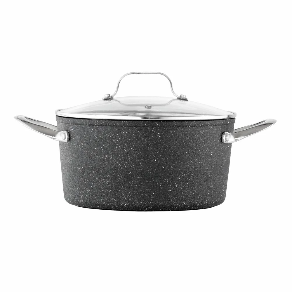 Baccarat has created the Rock range of cookware so you can have professional quality and durability in your own kitchen. The Baccarat Rock 24cm Casserole features a toughened, reinforced 3 layer non-stick surface that is durable like rock! Manufactured using a unique process called small pellet impact technology that results in super durability and excellent food release. On standard abrasion tests the best conventional non-sticks reach 20,000 cycles, most reinforced non-sticks reach 400,000. The Baccarat Rock 24cm Casserole reaches 700,000 cycles and still stops food from sticking! With a heavy gauged forged body, heat is distributed evenly and the weight ensures the pan will be warp free for a lifetime of daily use, plus it’s suitable for all cooktops including induction. This Baccarat Rock 24cm Casserole is also dishwasher safe and oven safe to 220C. Baccarat is so confident with the Rock Casserole that they offer a lifetime guarantee when cared for according to the Care and Use instructions provided.