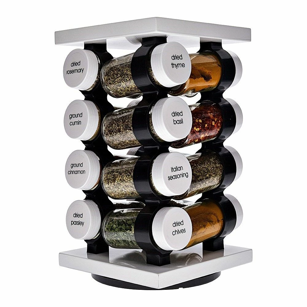 - Rotating spice rack with a smooth 360-degree spin that makes accessing your essential herbs easy