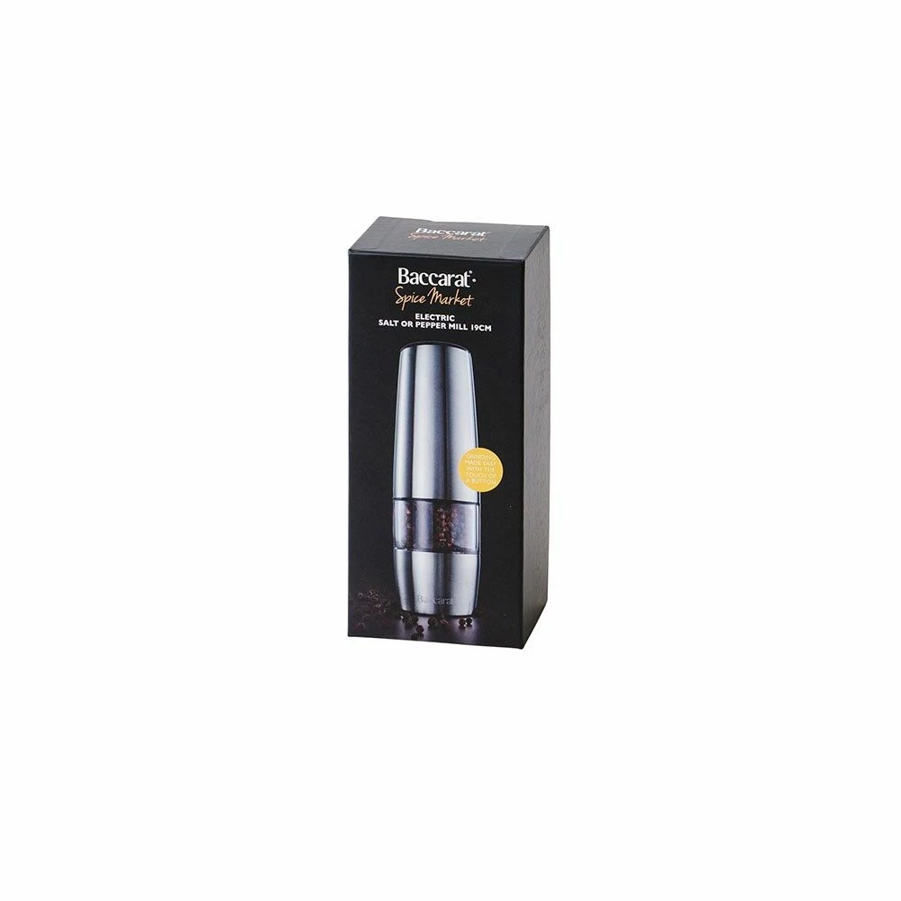 Baccarat have designed Spice Market Electric Mill to be practical in the kitchen and attractive on the table. Featuring precision technology that releases flavouring at a push of a value and acrylic chambers makes refilling the contents easy. Place the mill directly over the food that you intend to season, press the value on the top of the mill, and release the value to stop. Crafted from ceramic mechanism, this mill will limit the rust and provide consistent grind results. It comes presented beautifully boxed and makes a delightful gift for housewarmings, birthdays, and other special occasions. The Baccarat Spice Market Electric Mill requires 6 x AAA batteries which are not included.