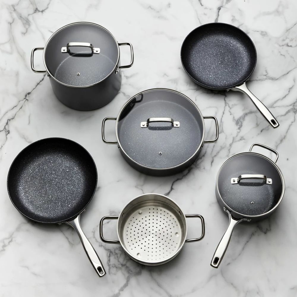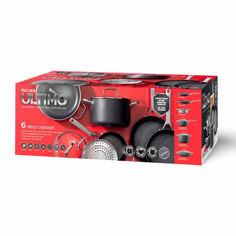 Experience Baccarat’s superior non-stick cookware with their new Ultimo 6 Piece Cookware Set! Crafted with a sturdy body, the Baccarat Ultimo 6 Piece Cookware Set features the brand’s toughest stone surface that not only ensures durability and quality is maintained over time, but provides a slick surface for the ultimate in non-stick, oil-free cooking. Rapid and even heat distribution from the base and through the body of the Baccarat Ultimo Cookware ensures that your food is cooked evenly and thoroughly every time, for perfect and delicious results that the whole family will enjoy. The Baccarat Ultimo non-stick coating is revolutionary – completely Lead, Cadmium and PFOA chemical free, the Baccarat Ultimo Cookware offers you the safest cooking experience yet. Fitted with an induction ready base, the Baccarat Ultimo Cookware can safely be used on gas, electric, halogen, ceramic and induction cooktops, plus it’s oven and dishwasher friendly for total convenience.