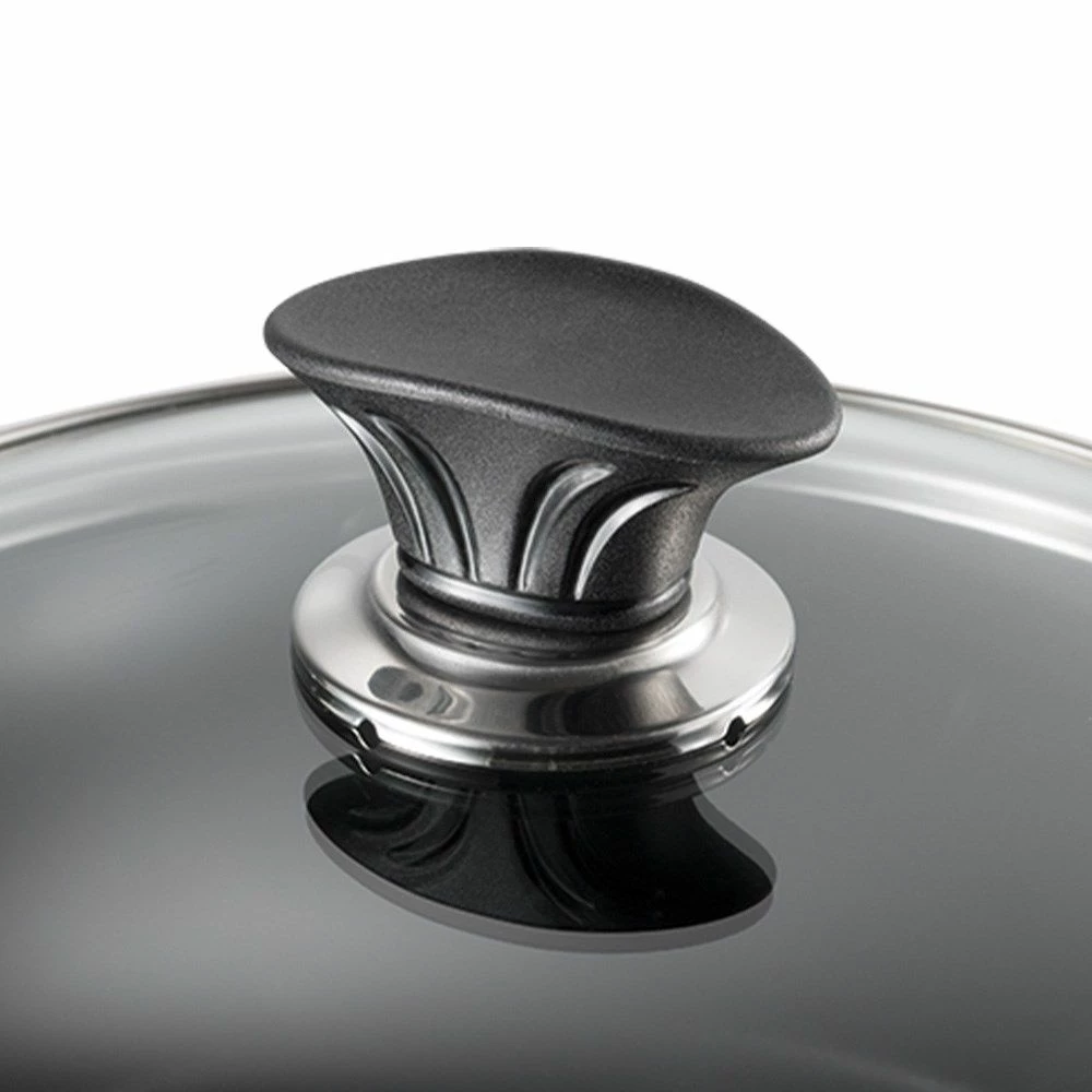 - Fitted with a patented stay cool knob handle, the Universal cookware lid remains safe and comfortable to grip and handle during and after cooking